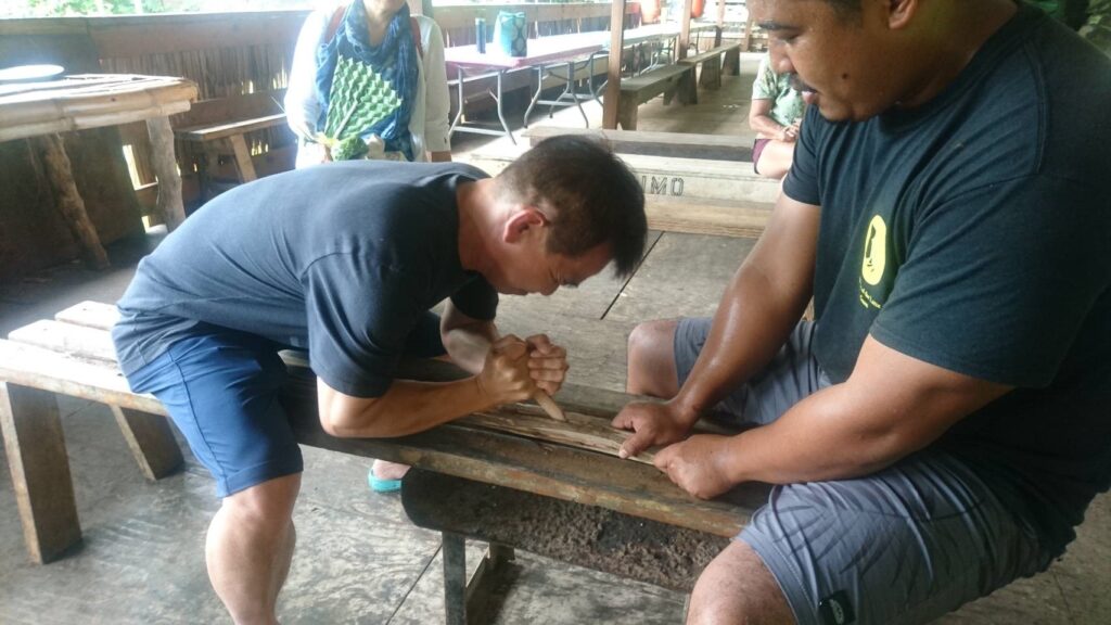 もう1つは伝統的なチャモロ織りと火体験、
