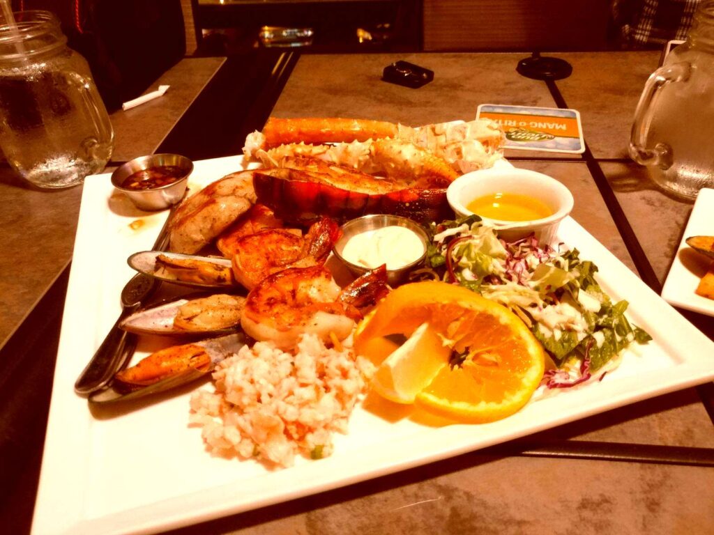ロブスターテール、ムール貝、エビなどを添えたシーフードの盛り合わせも、シーフードの必需品です。