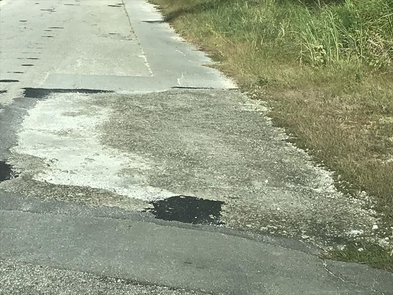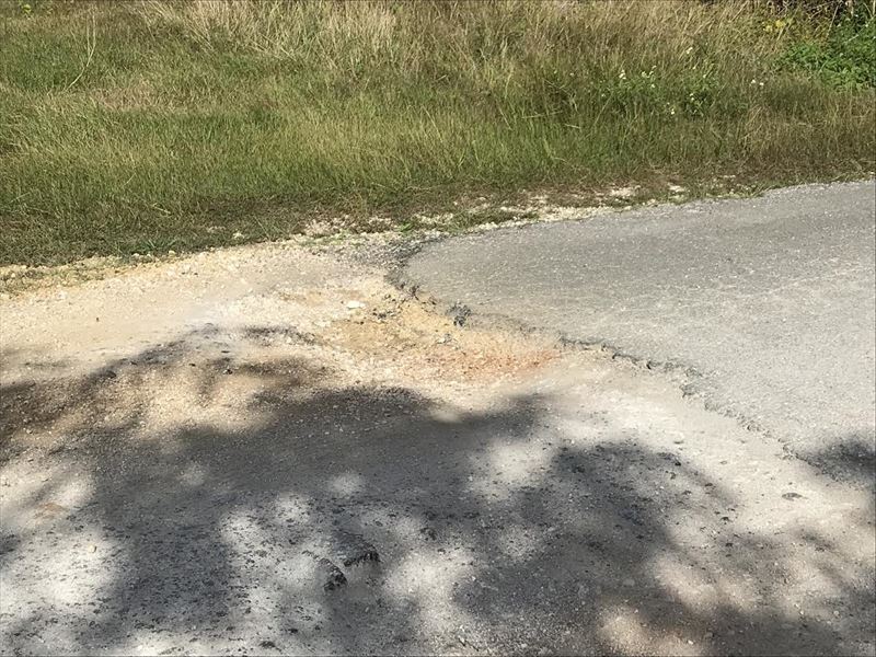 사진과 같이 포장이 부서지거나 구멍이 뚫려 있어 타이어 펑크나 차체가 손상될 위험이 있어요