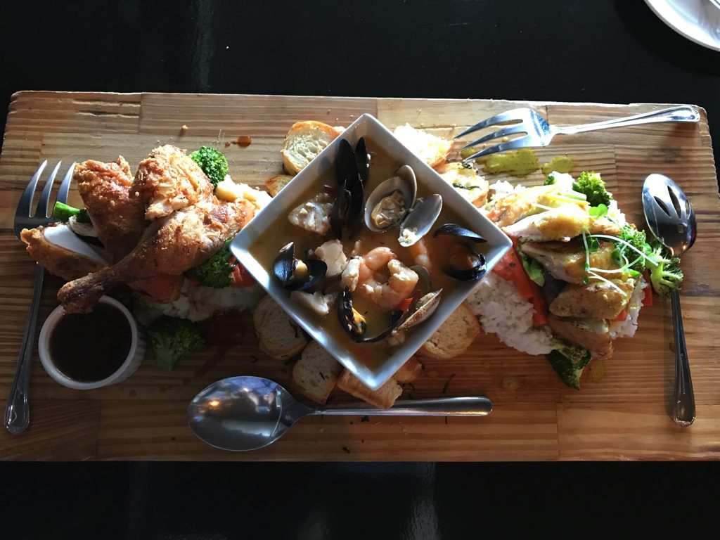 소셜 플래터로 서빙된 뼈있는 치킨, 사이드 요리인 브로콜리와 당근은 너무나 신선, 그리고 감자를 통째로 으깨 만든 매쉬포테이토는 셰프가 자랑하는 일품 요리랍니다.