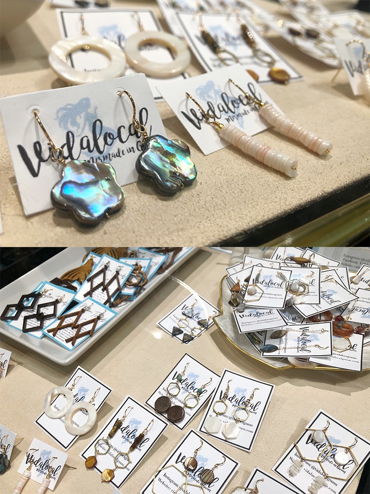 超海島風的耳環每一件也都出自藝術家們的巧手,做工細膩,充分將貝殼及木頭做最大的發揮,十分受日本櫻花妹們的歡迎。