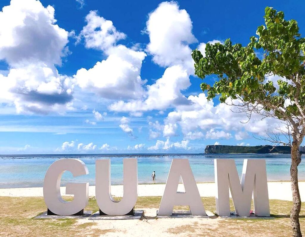 沙灘前面還有大大的”GUAM”裝置藝術,白色字體以美麗的杜夢灣為背景,超夢幻的畫面總是吸引大批觀光客打卡留念喔。