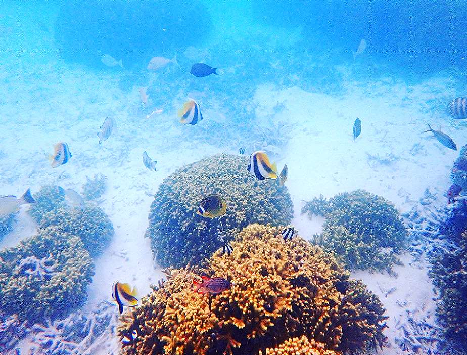 而前方的怡保海灘則是內行人才知道的浮潛地點,與杜夢灣北邊的Gun Beach一樣,海里魚群自在悠游,是潛水者的天堂,但記得這裡禁止餵食吸引魚群,也不要踐踏與觸碰珊瑚,除了避免受傷以外,也是為了保護海裡生態的永續。